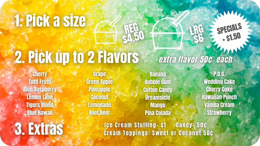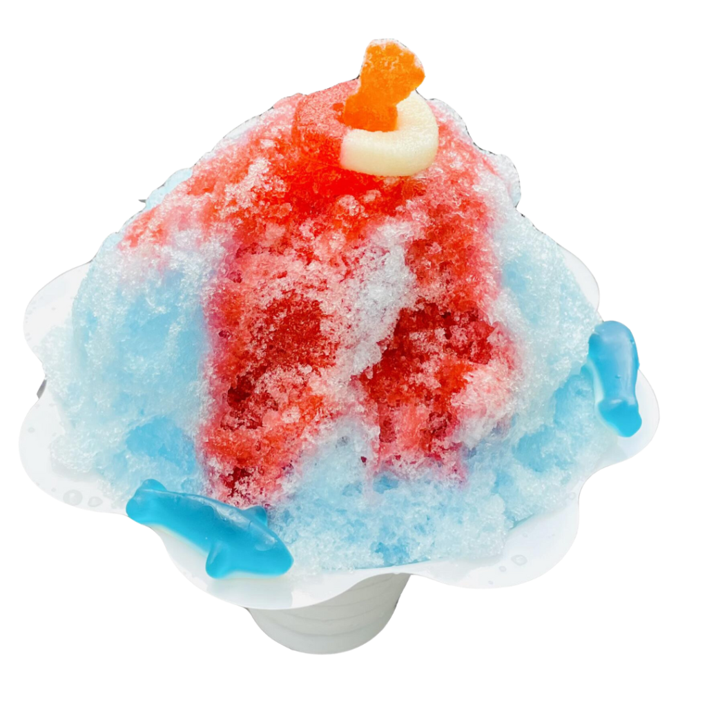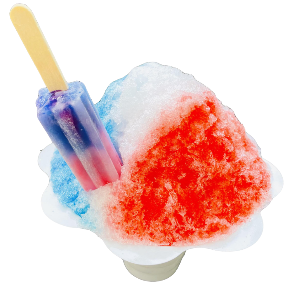 Cherry, Lemonade, and Blue Raspberry Flavors Topped with a Bomb Pop