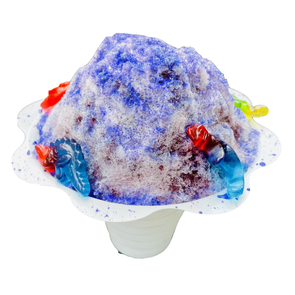 Blue Hawaii and Tigers Blood Flavors Topped with Sour Patch Kid and Gummy Sharks